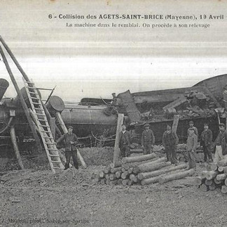 Un grave accident de chemin de fer s'est produit cette nuit, à quelques kilomètres au delà de Sablé. Le rapide 721, de Paris à Saint-Nazaire, parti de Paris Saint-Lazare à 9 h. 55 du soir et qui passe au Mans à minuit quarante-cinq, a déraillé en pleine voie, vers 1 h. 40 du matin au kilomètre 268 entre les gares de Segré, les Agets-Saint-Brice et Bouère. Cinq wagons renversés ont obstrué les voies; Le wagon-poste a pris feu et a été consumé presque instantanément ; les sacs de dépêches n'ont pu être sauvés, assure-t-on.
