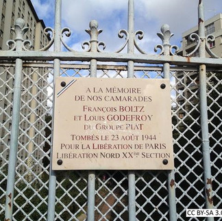 Les 23 et 24août1944, deux trains de l'armée allemande sont pris par les Forces françaises de l'intérieur (FFI) du 19e arrondissement, avec l'aide de Madeleine Riffaud et d'habitants du 20e arrondissement qui ont investi, entre autres, la passerelle de la Mare. Une plaque célébrant la mémoire des résistants morts à cet endroit, François Boltz (38 ans), Louis Godefroy (53 ans), Adjeman (50 ans) et « deux patriotes inconnus », était fixée sur la passerelle. Maculée de graffitis, elle a été remplacée par une nouvelle plaque, qui ne cite plus que les deux premiers résistants et le « groupe Piat ». Une seconde plaque, apposée sur le pont rue de Ménilmontant, porte toujours l'inscription originale.